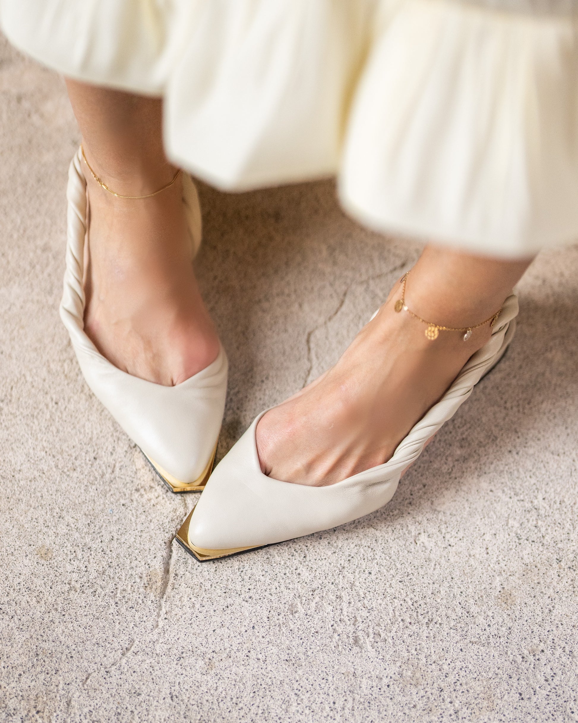 heel, asymmetric gold toe piece and twisted strap and padded insole, it really is an everyday piece with comfort